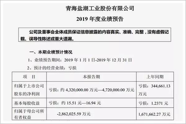 2018年,青海省生产总值约2865.23亿元。也就是说,*ST盐湖的最大亏损额超过青海省一年GDP的1/7。