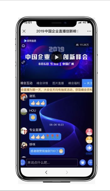 基于大量的企业用户使用场景需求,微赞为企业提供了方便快捷的直播技术服务,支持VR全景、视频、图片、图文、语音直播等多样直播方式一键开播,支持企业直播接入企业微信、企业服务号、企业可独立部署专属小程序。此外,针对企业的分级管理需求,研发专属子账号体系,满足企业多级管理。