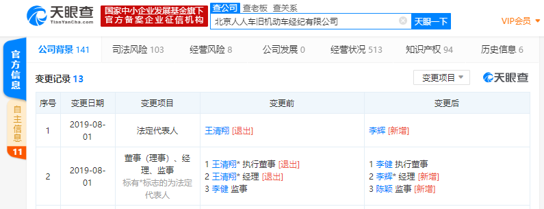 事实上,天眼查数据显示,2019年8月,该公司还曾发生多项工商变更,其中王清翔卸任公司法定代表人、执行董事和经理,并由李辉接任,此外,李建卸任公司监事,由陈颖接任。