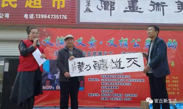 11、2016年10月,安丘市硬笔书法家协会旗下的安丘新生活微信平台,策划并实施了“爱如潮水--救助坚强母亲”书画义捐义卖义演大型募捐活动举行,募捐善款3万余元。