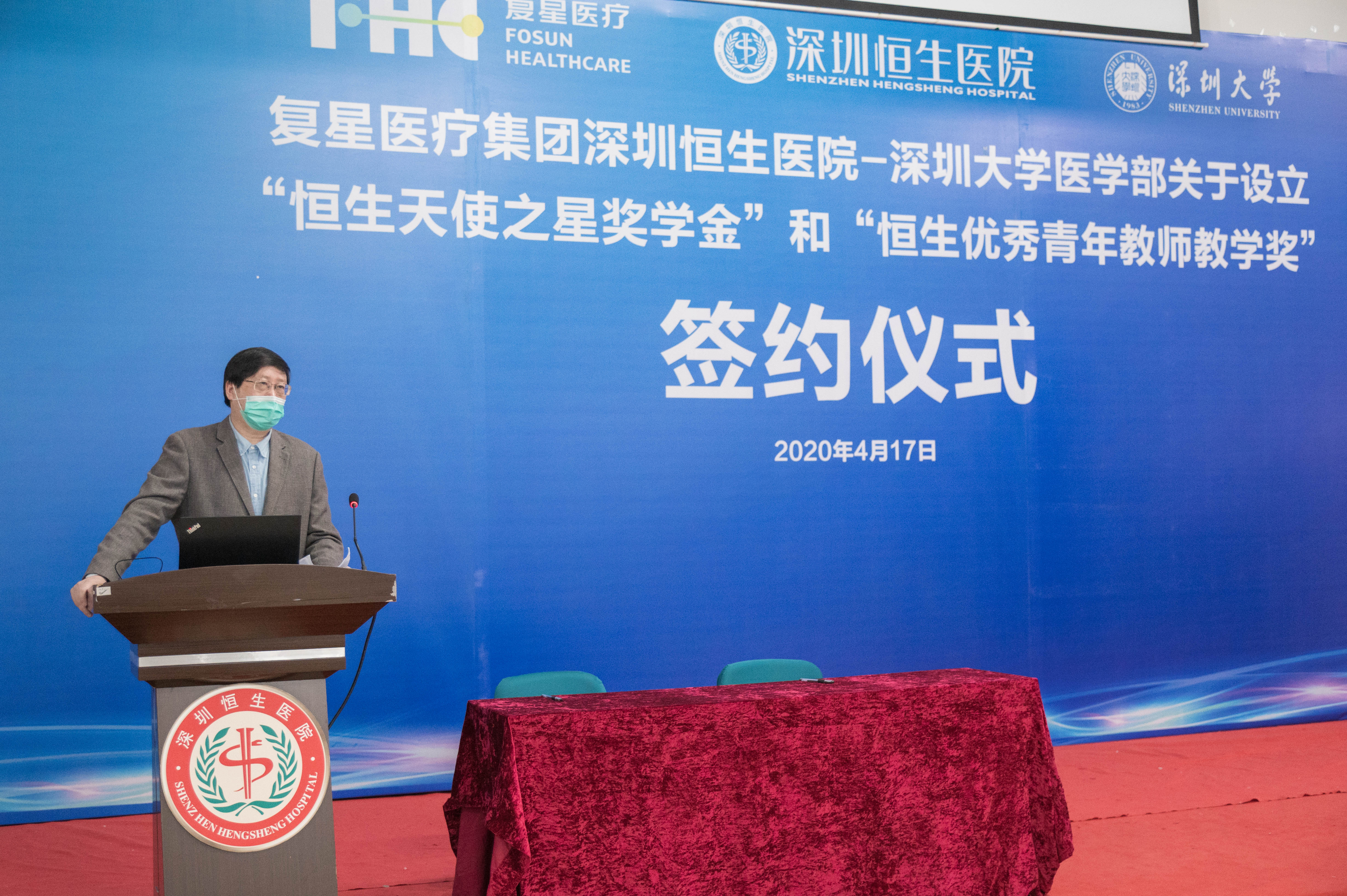 4月17日上午,复星医疗集团深圳恒生医院与深圳大学医学部达成合作意向,正式设立“恒生天使之星奖学金”和“恒生优秀青年教师教学奖”并举行签约仪式。