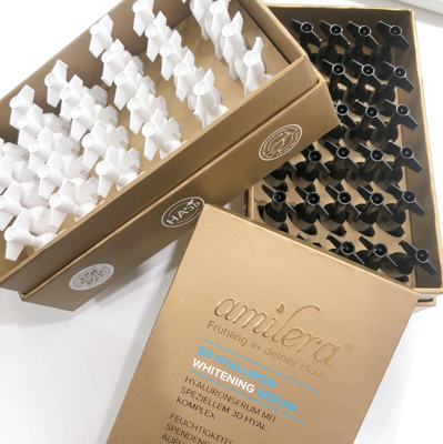 Amilera玻尿酸驻颜密集修护精华安瓶(抗皱安瓶)、Amilera玻尿酸活肤焕白精华安瓶(焕白安瓶)两款明星产品,因其独创的科学的配比与玻尿酸多重分子协同导入系统,使得产品效果显著,达到媲美医美的超强效果。自从上市以来就不断创造奇迹,拿下高销量与好口碑的双重佳绩,一跃成为德国女性乃至全球女性非常信赖的护肤产品。