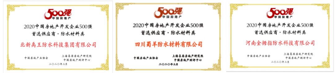 刚刚启动半年左右时间的“北新防水”首次荣获“2020中国房地产开发企业500强首选供应商·防水材料类”荣誉称号,并进入前三名。