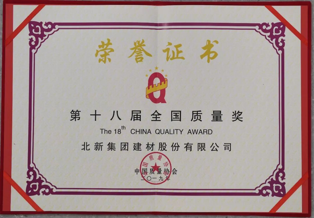 荣获“全国质量奖”,是我国建筑材料行业唯一荣获工业和质量领域最高奖“中国工业大奖+全国质量奖+中国杰出质量人”的三冠王。