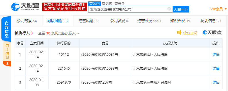 公开信息显示,这并不是人人车关联公司第一次被执行人;人人车另外一家关联公司北京善义善美科技有限公司于今年1月和2月曾三次被列为被执行人,累计执行标的为2923627。据了解,北京善义善美科技有限公司成立于2014年9月,注册资本为5亿美元,法人代表为李辉,公司经营范围包括销售自行开发的软件产品、汽车等;人人车CEO李健为该公司的执行董事。