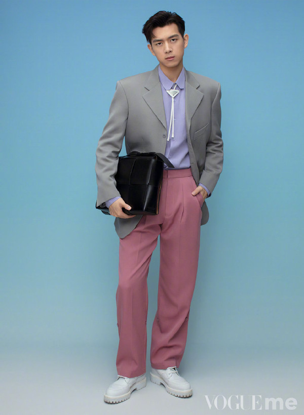或身穿LOUIS VUITTON2020春夏男装系列,同样是休闲风格满满的西装造型。一件阔版的灰色西装外套,没有什么亮点但是完美的展示了李现的太平洋宽肩,内搭清新感十足的浅紫色衬衫,充满色彩饱和度的同时也让灰色的西装外套看起来更加有生机了一些,没有选择领带,而是一条白色的系带领结搭亮点满满。