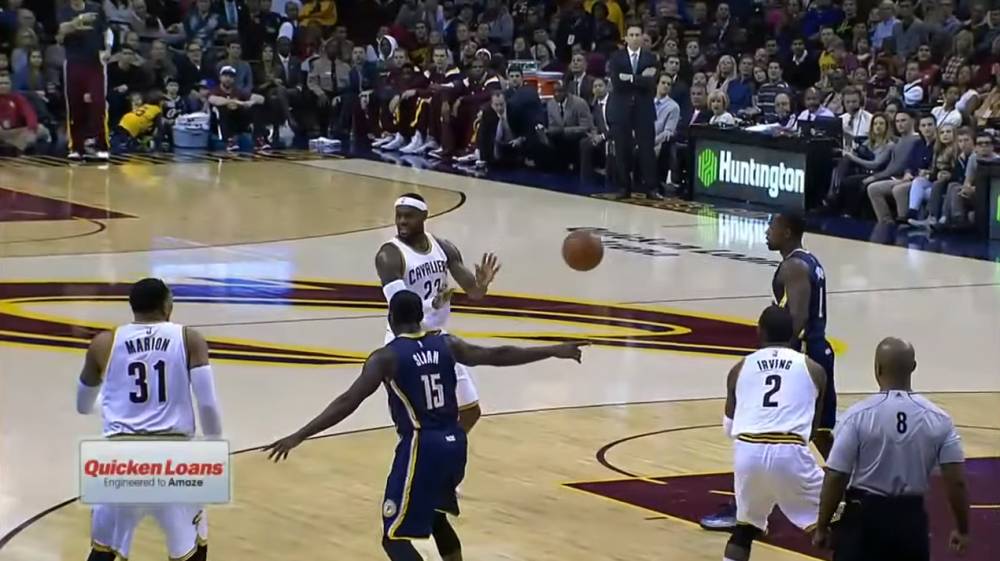 2014年11月30日,骑士坐镇主场迎战步行者。首节进行到7分多钟时,骑士的反击机会,詹姆斯将球传给欧文,后者杀入篮下再给右侧底角,马里昂再给詹姆斯!此时,詹姆斯对着马里昂挥手,示意让其往前跑,随后极速把球给到欧文,后者打板上篮拿下两分!