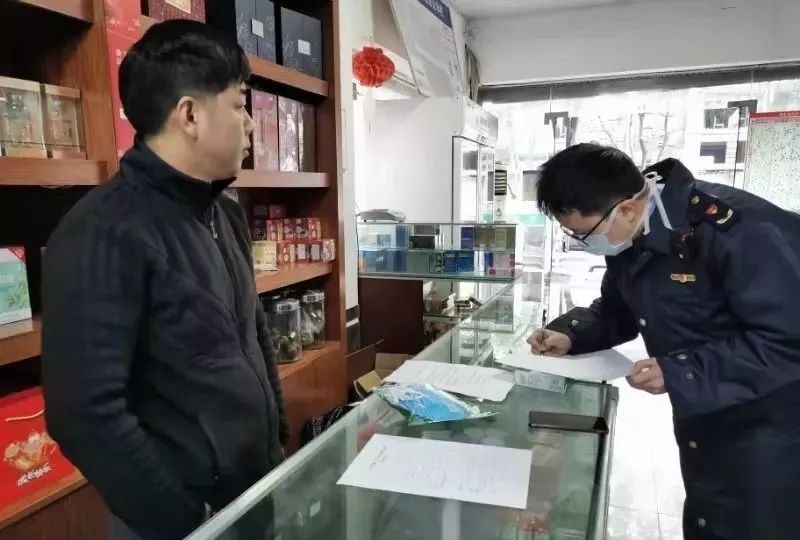 当天下午,河头市场监管所执法人员在巡查过程中,发现辖区某药店柜台上有口罩在售。该药店经营户无法提供任何进货凭证。执法人员现场依法对店内210只“三无”口罩予以扣押,案件正在进一步调查取证中。