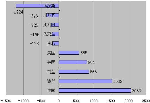 图3:德国电气电子工业出口增减绝对值前十名(单位:百万欧元)。资料来源:德国电气电子制造业协会(ZVEI)