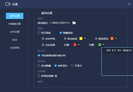 选择录屏的模式后,再设置具体的参数,如视频格式、清晰度、视频帧率、声音来源等。再点击软件的左下角和视频文件保存路径等等进行设置。要确保所选视频文件保存路径空间大小充足,避免录屏的过程中出现错误。
