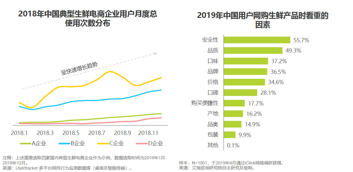 生鲜行业以其刚需、高频复购等特点,历来都是备受零售商家青睐的网红赛道。生鲜电商近年来在国内高速发展,结合社区拼团、小程序,不断冲击市场风口。7月,知名第三方机构艾瑞咨询发布了《2019年中国生鲜电商行业研究报告》,详解生鲜电商行业发展现状、竞争格局以及未来趋势展望。