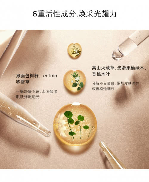 阿尔卑斯高山火绒草又称雪绒花,十分稀有且难以采摘,具有优秀的抗氧化活性;光滑果榆绿木则是一种高效抗衰老祛皱成分;香桃木叶是护肤品中作为抗氧化剂的存在,可以预防清除肌肤中的黑色素,淡化色斑。这三种活性成分可以分解不良蛋白,增加皮肤弹性,有效改善松弛细纹。
