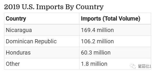 在进口国的数据中,排在第三位的洪都拉斯在2019年的下降量最大,降幅为13.5%,其次是排名第二的多米尼加共和国,较去年的1.179亿支减少9.9%,而进口排名第一的尼加拉瓜较2018年的1.726亿支仅下降1.9%。