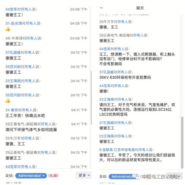 报告结束后,参会人员围绕中压开关柜发展动态及热点问题纷纷向专家请教,王平教高一一解答并提出许多具有重要建设性和前瞻性的建议。培训活动结束后,大家在微信群里留言致谢,表示受益匪浅,收获颇丰,期待我会多组织类似的高层次技术交流活动。