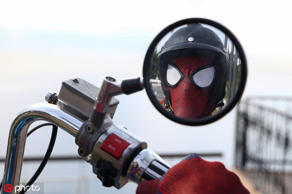 当地时间2019年11月4日,土耳其安塔利亚,26岁男子Burak Soylu扮蜘蛛侠进行表演。据悉,Burak Soylu在酒店工作,cosplay超级英雄“蜘蛛侠”已有3年时间,经常在城市最热闹的街头和公园现身表演,吸引众人目光。(图源自IC图库)