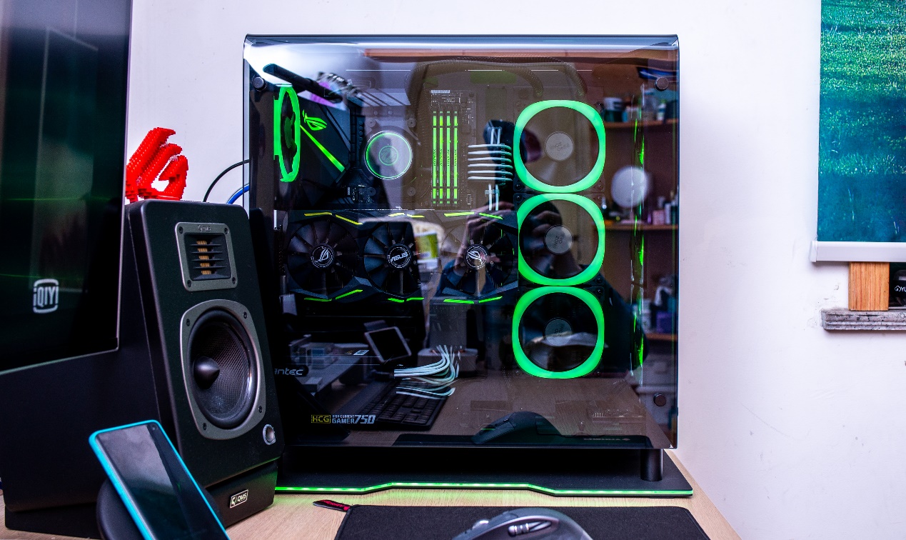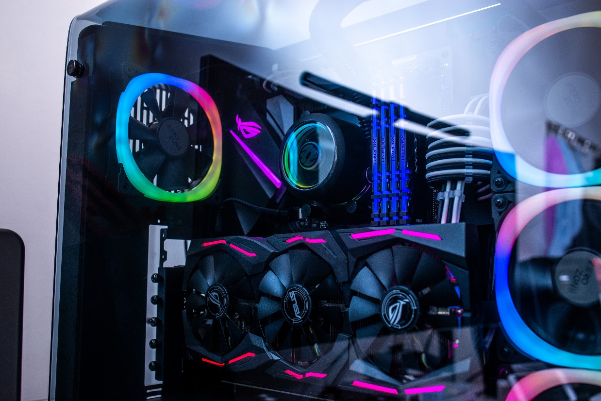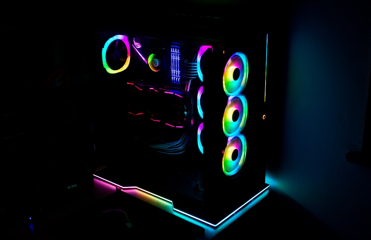 由于使用的是染色玻璃,它在开机时发出的光,不会像常规的侧透机箱那样光芒四射,而是给人一种内敛且柔和的感觉。光的亮度适中,不会让观赏者感到刺眼。