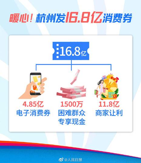 广东顺德派发亿元消费券,8000万用于餐饮 4月15日起,广东省佛山市顺德区派发1亿元额度的消费券,其中约8000万元为餐饮消费券,约2000万元为通用消费券。消费券面向所有顺德市民和到顺德的游客发放。 杭州发放16.8亿消费券 3月26日,杭州宣布将发放预计总额达到16.8亿元的消费券,鼓励消费者,扶持杭州商家,拉动线日杭州市民可正式领取消费券。该活动将覆盖杭州餐饮、购物等领域的600万线下商户。这是杭州利用数字化提振经济的重大举措。