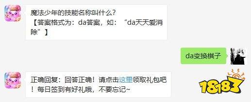魔法少年的技能名称叫什么?这是2020年天天爱消除4月15日微信每日一题的问题,答对可获得天天爱消除每日一题幸运扭蛋机抽奖资格,可获得积分、金币和宠物等好礼,大家知道今天的答案吗?下面小编就为大家带来了答案,一起来看看吧。
