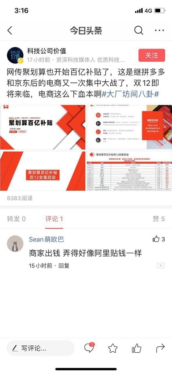 网友:现在这电商越来越没新意了,互相抄,搞不出什么花样。越来越多的电商去搞百亿补贴是好事,行业竞争越激烈对消费者越有利。“抄袭”这个词不好,有点带节奏,百亿补贴不是拼多多的专利。对于消费者而言,拿到货真价实的实惠和产品才是硬道理。