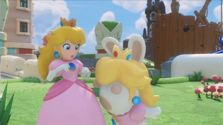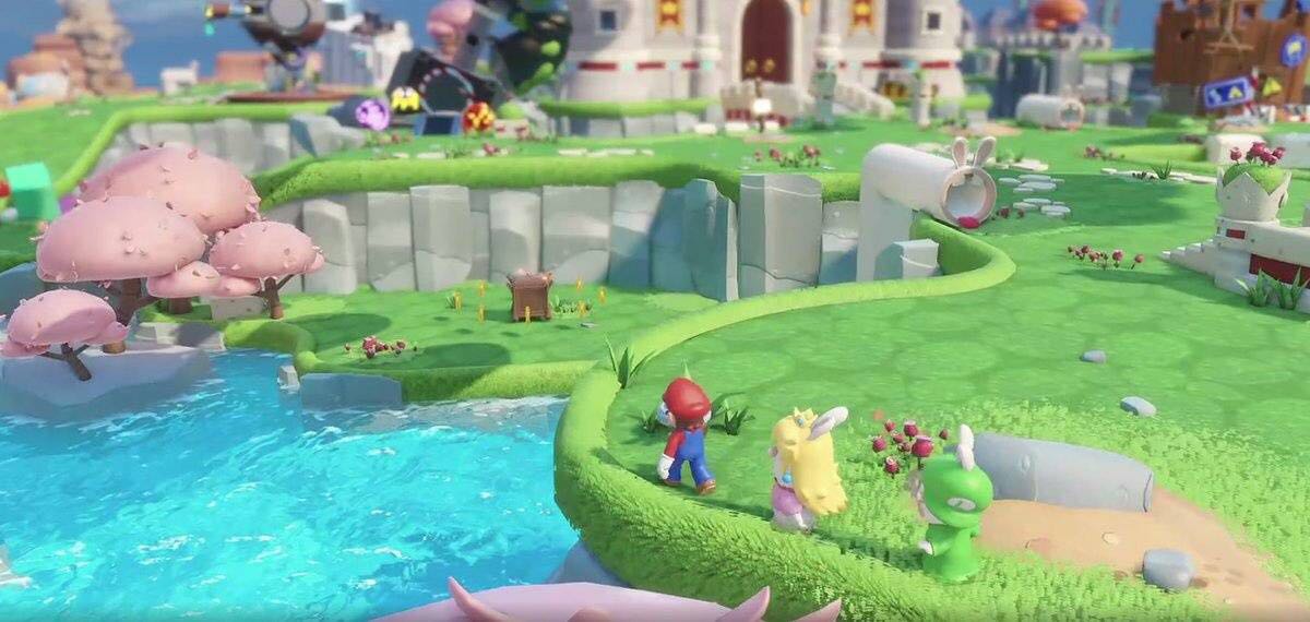 在宣传视频中,疯兔被传入了马里奥的蘑菇王国,随后两个角色结成同盟,一同探索蘑菇王国。游戏为上帝视角,玩家在探索蘑菇王国时,可以收集硬币,解决谜题,找到隐藏宝箱,获得装备来提升自己的队伍,对付拦路的敌人。