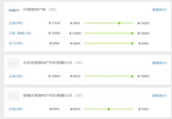 房地产记者需要对地产领域聚焦,写出深度报道,这就要求记者储备财经、地产、金融领域的相关知识,猎聘网显示,房地产记者的月工资区间在4500-6000元的占总样本数的75.1%(总样本数为802份)。