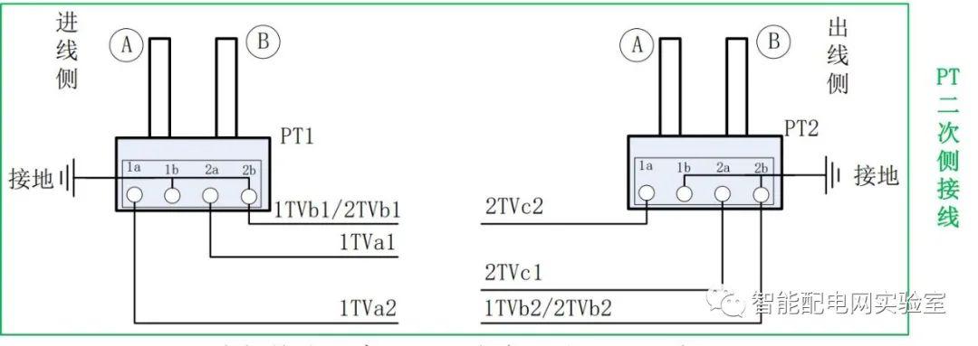 PT一次接线所示,PT一次侧应严格规范按照如下接线:针对电源侧,开关进线侧A相线的A柱,B相线接B柱;针对负荷侧,开关出线侧C相线的A柱,