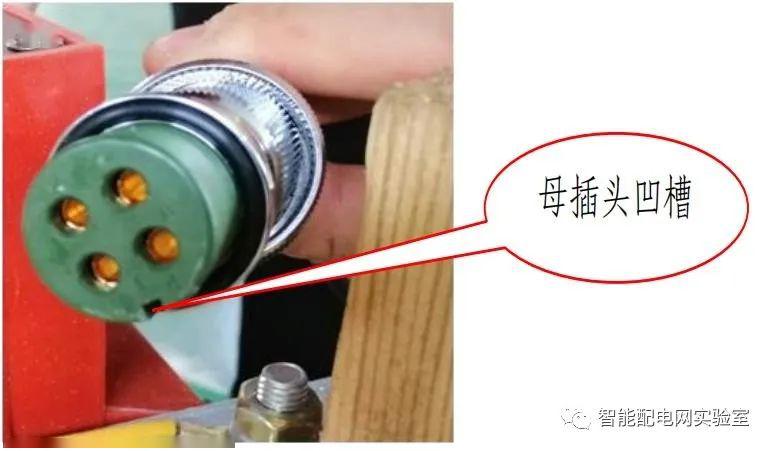 B相线接B柱。图 8 PT 一次接线、PT二次侧航空插头接线所示,将PT自配的航插电缆线的母插头凹槽卡进PT二次侧公插座内侧凸起,耦合当面平齐时,稍用力插入母插头并拧紧耦合环即完成PT二次航插接线 PT 自配的航插电缆线的母插头