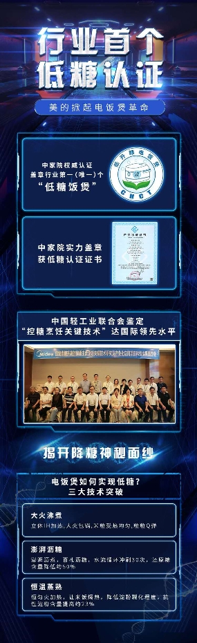 其实,让普通人也能轻松实现主食降糖,让低糖生活简单实现的愿景随着科技进步已经在实现。以4月15日美的刚刚发布的低糖电饭煲为例,据了解,该款电饭煲是中家院权威认证的“低糖电饭煲”的升级版,在蒸煮米饭的过程中,通过大火煮沸保证口感、澎湃沥糖让还原糖含量降低50%、恒温蒸熟让抗性淀粉含量提高23%,三道程序,实现了米饭的有效降糖,让普通人也能轻松实现低糖生活。