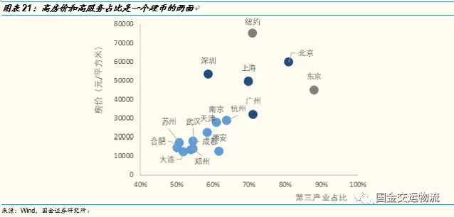 随着中国一线城市高房价对制造业的持续挤出,一线城市的产业结构或将向更高附加值的中高端服务业聚集,而服装、百货等传统制造业将进一步向低成本、高效率的地区集聚。