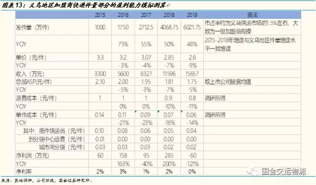 在实地调研中我们了解到,尽管义乌快递市场可谓全国快递市场的价格洼地,但多数加盟商的盈利能力实则并不算差。