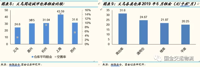 义乌市2019年6月平均租金约为25元/平米*月,较周边城市价格便宜25%左右。义乌市仓库空置率仅为3.15%,是周边五个城市中最低值。为解决仓储资源瓶颈,目前义乌市政府在两方面投入大量资源,一是提高目前物流仓的集约化程度,二是发展电商智能仓,节省仓储面积。总体来看,义乌低廉的仓储成本也是其吸引电商集聚的重要因素之一。