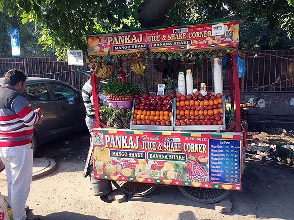 在李茶看来,印度人之所以不叫外卖,是因为食物触手可得。他用一个词来形容印度的饮食文化——摊儿。「印度街上有很多摊儿,比如炒饭摊儿、小吃摊儿、果汁摊儿,当地人一般站着就把饭吃了。好一点的摊儿会放几个站立高度的小桌,一般是没有椅子的。」