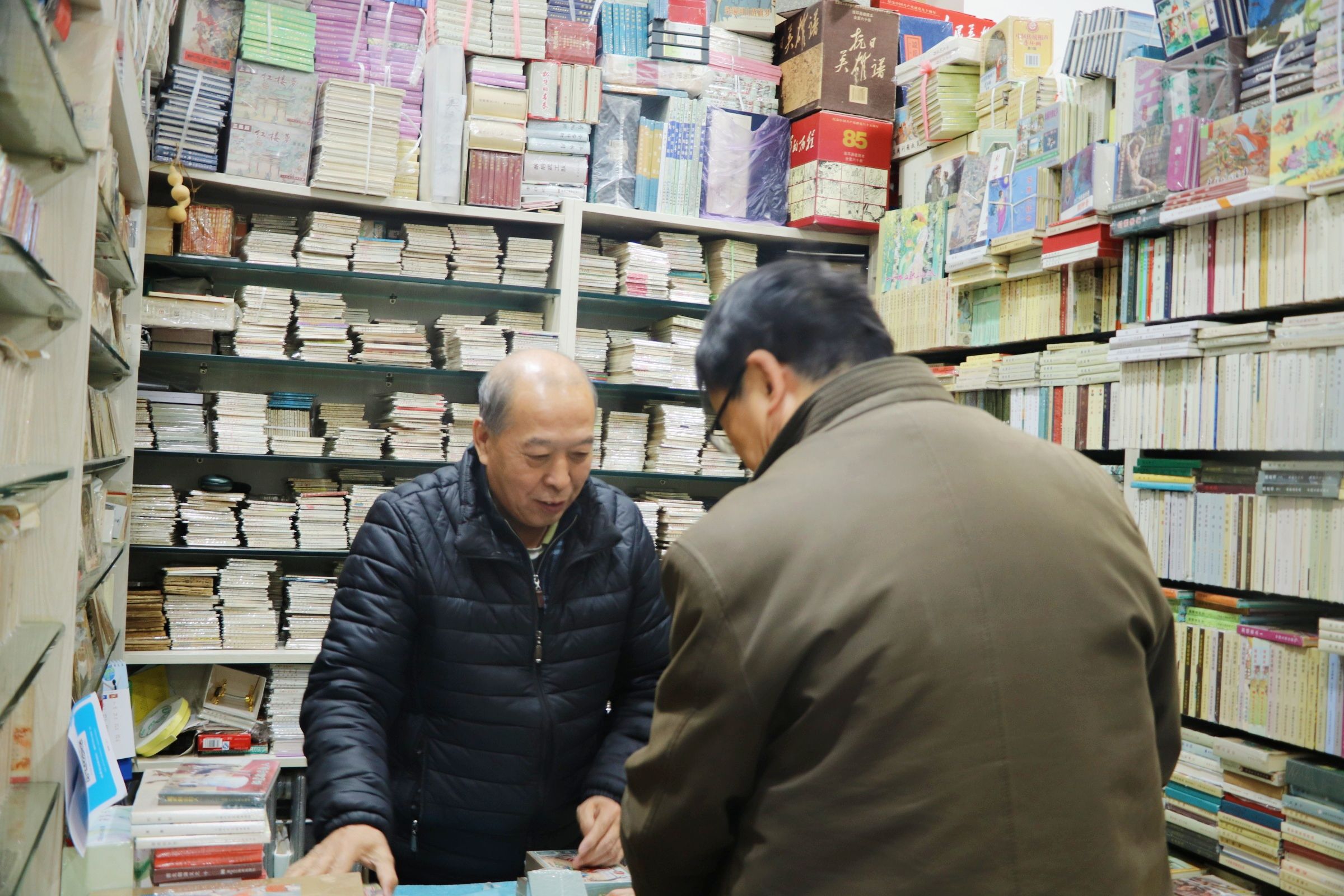 连环画店主马先生是1949年生人,2002年来到了报国寺收藏市场,如今从事这个行当已经17年。“小人书”对于马先生而言可谓是意义匪浅,在物质匮乏的年代,家家户户都没有电视,“小人书”中一个个英雄人物印刻在了脑海中:雷锋、王麟、董存瑞、黄继光等。“小时候,这一片儿的孩子都在一所小学上课,放学后,把书包一扔,一群孩子就去玩儿弹球、拍三角、扇洋画,我就用弹球赢了同学一本‘小人书’,没头没尾,揣在兜儿里,反反复复看了好多遍。”