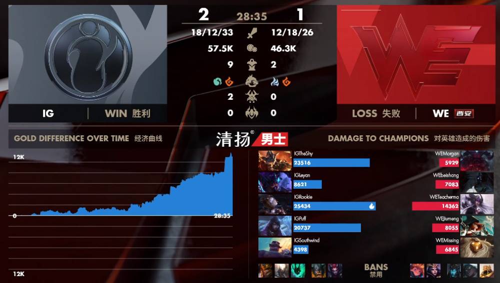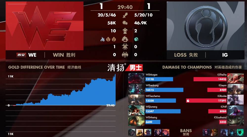 4月15日讯 LPL春季赛第七周的第三个比赛日,最后一场比赛由IG对阵WE。IG已经确定晋级季后赛而WE处于季后赛边缘力争资格。