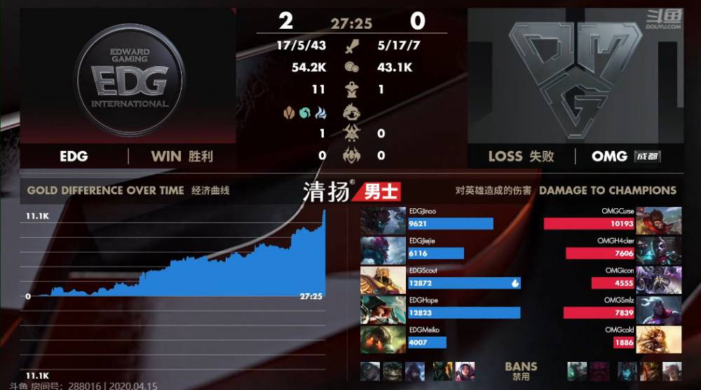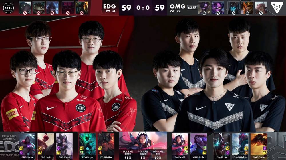 4月14日讯 LPL春季赛第七周第三比赛日,第一场比赛由EDG对阵OM。双方都在力争季后赛名额,EDG八胜五负排名第六,OMG七胜七负位列第八。