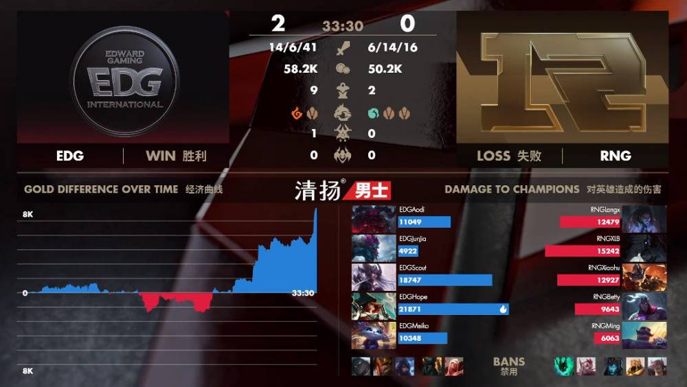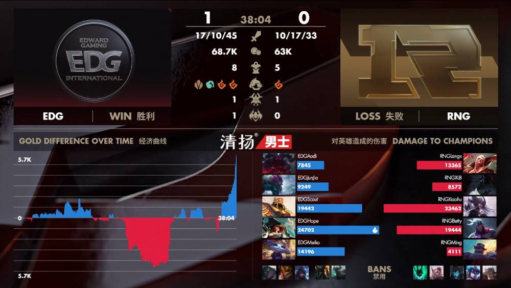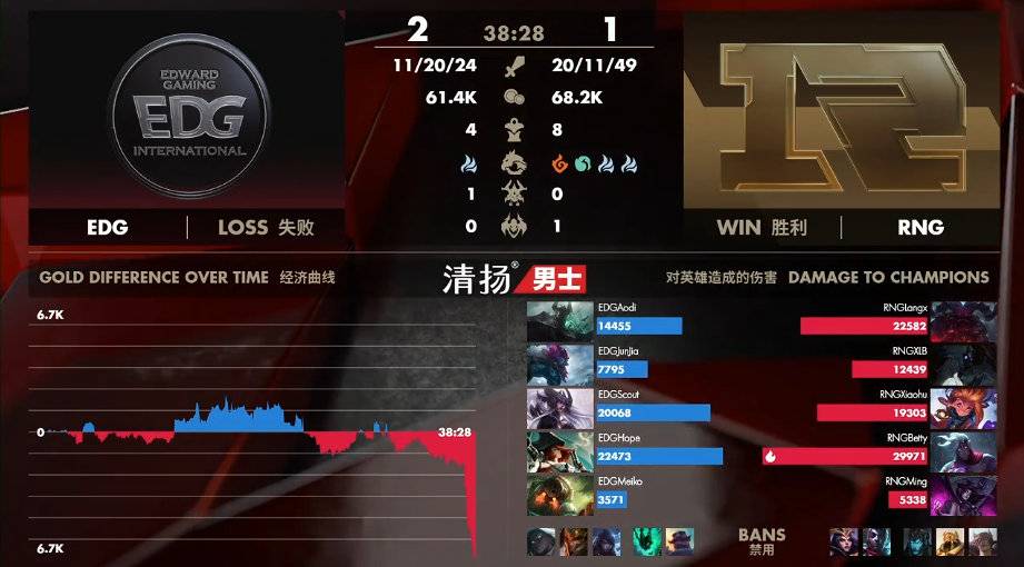 4月19日讯 LPL春季季后赛的比赛今日将开始第二个比赛日,对阵双方为常规赛第六的EDG面对第七的RNG。EDG最终3-1拿下胜利,在下一轮他们将面对FPX。