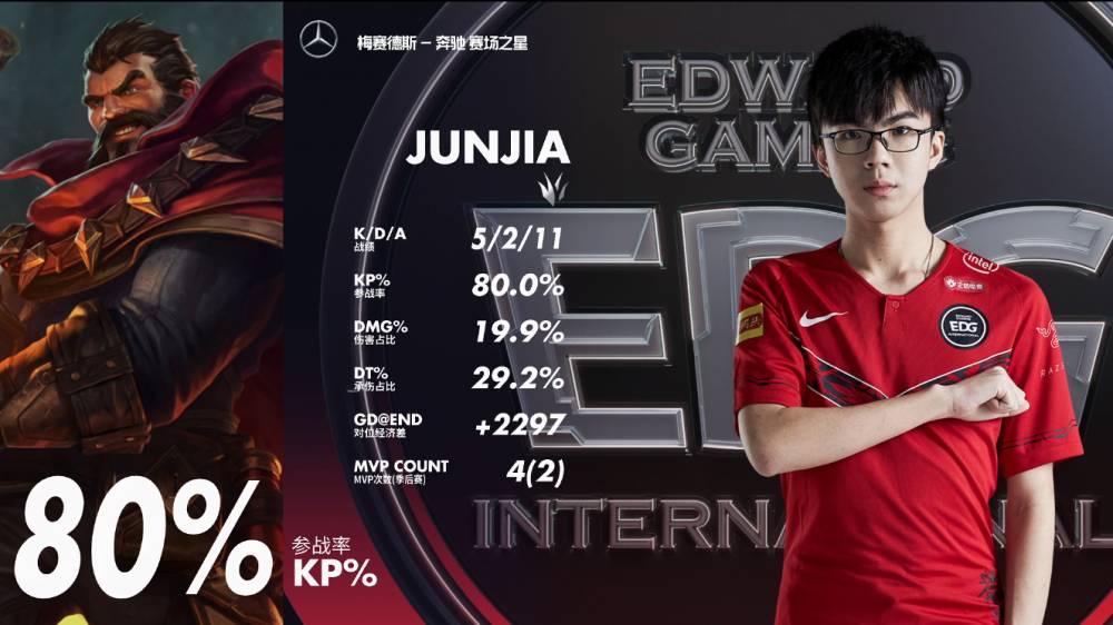 蓝色方EDG:女枪、巨魔、铁男、辛德拉、泰坦