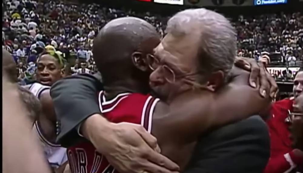 拉曾比:“克劳斯和菲尔的矛盾在97年的秋天时就激发了,克劳斯当时说,‘我不管,即便球队82胜0负,菲尔也不会再回来了。’这就像现在的民主党和共和党。那种程度的仇恨,真的。菲尔想要得到报酬。当然,乔丹和皮蓬跟克劳斯的关系也很紧张。菲尔,一直是一位激发动力的大师,他利用了这一点。很明显,他站在了球员的一方。菲尔和克劳斯的战争已经失去了控制。另一方面,他和球员一起获得了六次总冠军。他们两次重新改造了那支球队。他们彼此都不喜欢对方,但是许多球队都要在一起工作,直到他们实在无法相处。你必须把所有功劳给到他们。”