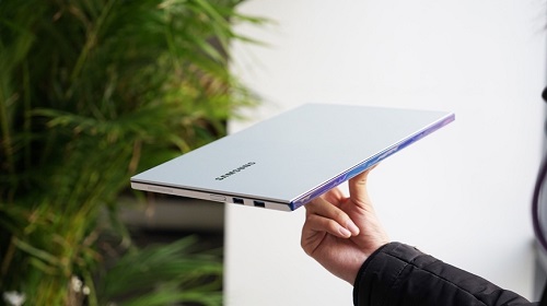 值得一提的是,三星 Galaxy Book Ion A面的色调还会随着不同角度的光线发生变化,更是进一步增加了整机美感。由于三星 Galaxy Book Ion机身采用了镁合金材质,在保证产品坚固耐用的同时,也使得整机的重量维持在了970克,外出办公携带不会出现明显的负重感。