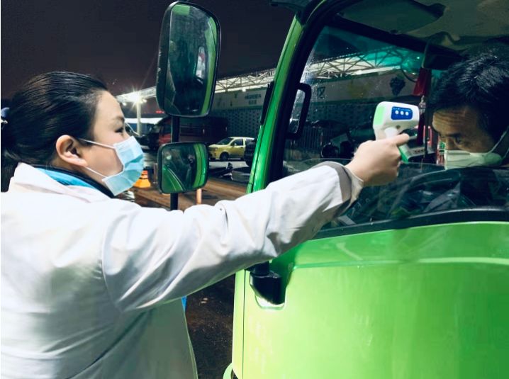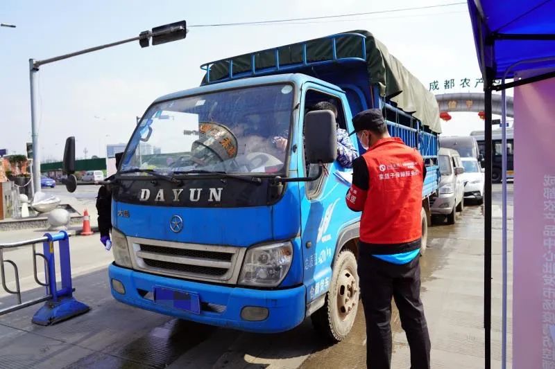 “您好,请您测量下体温。”“请您做好登记……”在成都农产品批发市场,“菜篮子保障服务队”队员、党员王碧祥举起示意牌、测温枪,耐心地向司机询问登记解释。