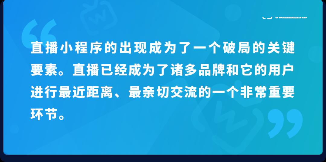 而他的微信好友看到了他所转发出来的这一张小程序卡片之后,通过一步点击就能够进入这个直播间同样观看直播。所以我们说微信所提供的直播能力,确实是离用户最近的一个直播间,越容易进行推荐,才越容易进行直播间的推广和传播。