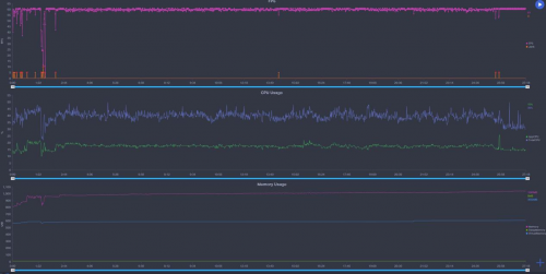 从性能狗Perfdog给出的测试数据来看,华为nova7 Pro在运行王者荣耀时有着很不错的表现,在接近20分钟的游戏中,帧率一直维持在60帧上下,偶尔浮动但是变化不大,即便是在大型团战时也没有过于明显的拨动。CPU和内存的使用率也都保持在相对平稳的状态,整体表现非常出色。