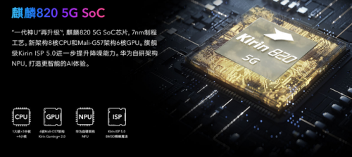 此外,麒麟820芯片采用了旗舰级的7nm制程,性能更高、功耗更低。CPU采用了8核配置,最新的ARM架构Mali-G57 GPU进一步提升了游戏娱乐体验。高性能GPU能够更快速完成复杂游戏场景的建模与色彩渲染等工作,画面刷新频率更快,不会出现拖影、卡顿等情况。