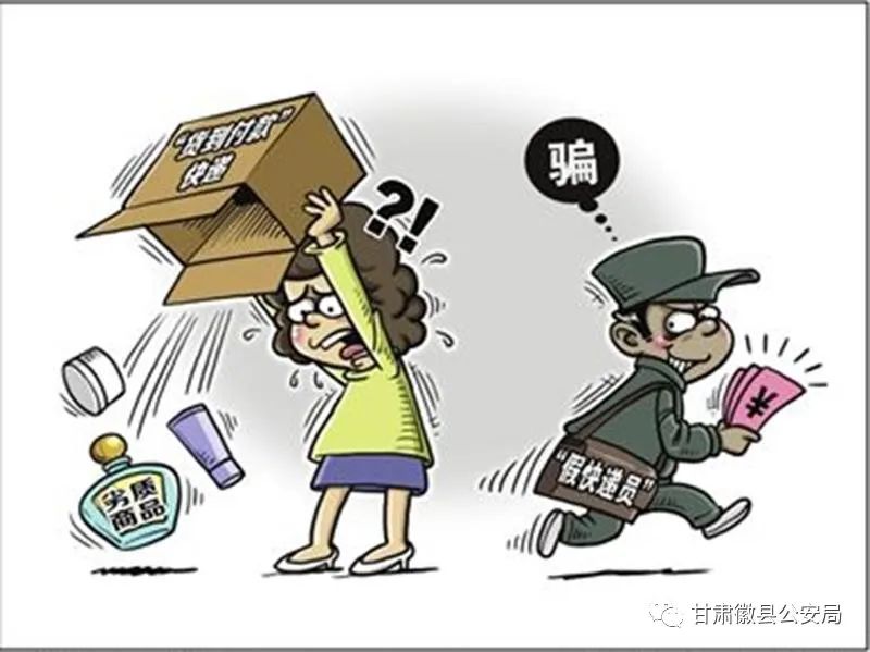 犯罪分子冒充快递人员拨打事主电话,称其有快递需要签收但看不清具体地址、姓名,需提供详细信息便于送货上门。随后,快递公司人员将送上相应物品(假烟或假酒),一旦事主签收后,犯罪分子再拨打电话称其已签收必须付款,否则讨债公司或黑社会将找麻烦。