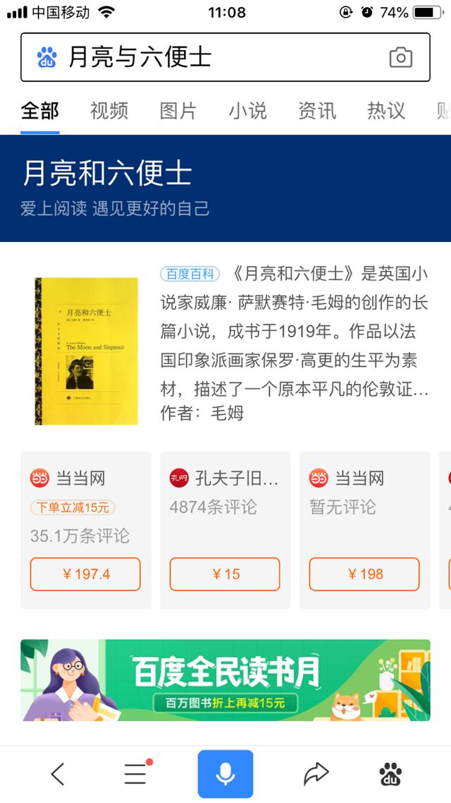 百度围绕世界读书日打造的全民读书月活动,就是一个从提供信息到提供商品和服务的典型案例,同时,也可被视为是百度移动生态内部的一次大阅兵。