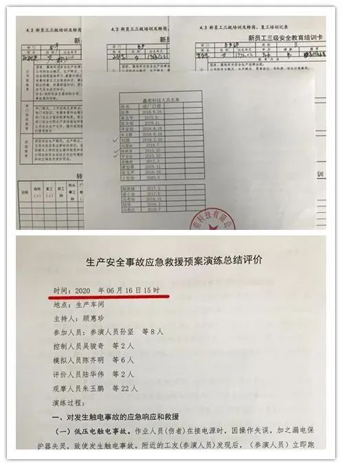 3、未按规定组织开展事故应急救援预案演练(企业提供的2020年生产安全事故应急救援预案演练总结存在作假嫌疑,落款时间为2020年6月16日)等问题。