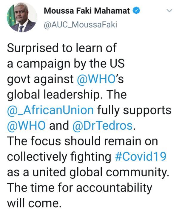 △非盟主席法基4月8日发推 反对攻击世卫支持谭德塞