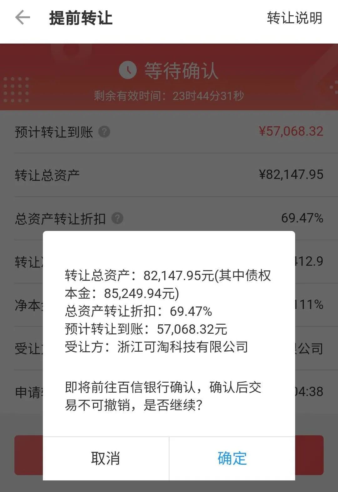深蓝财经查询后发现,受让方只有两个选项:一个是自动匹配,另一个是浙江可淘科技有限公司,且必须自行填写转让折扣。