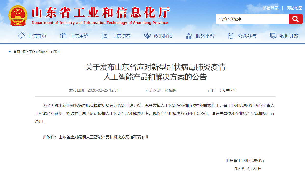 为充分发挥人工智能技术在疫情防控中的重要作用,近日,省工信厅发布了山东省应对新型冠状病毒肺炎疫情人工智能产品和解决方案。矩阵软件研发的大宗物资物流SaaS平台系统成功入选,为我省全面抗击新型冠状病毒肺炎提供了有效的智能手段支撑。