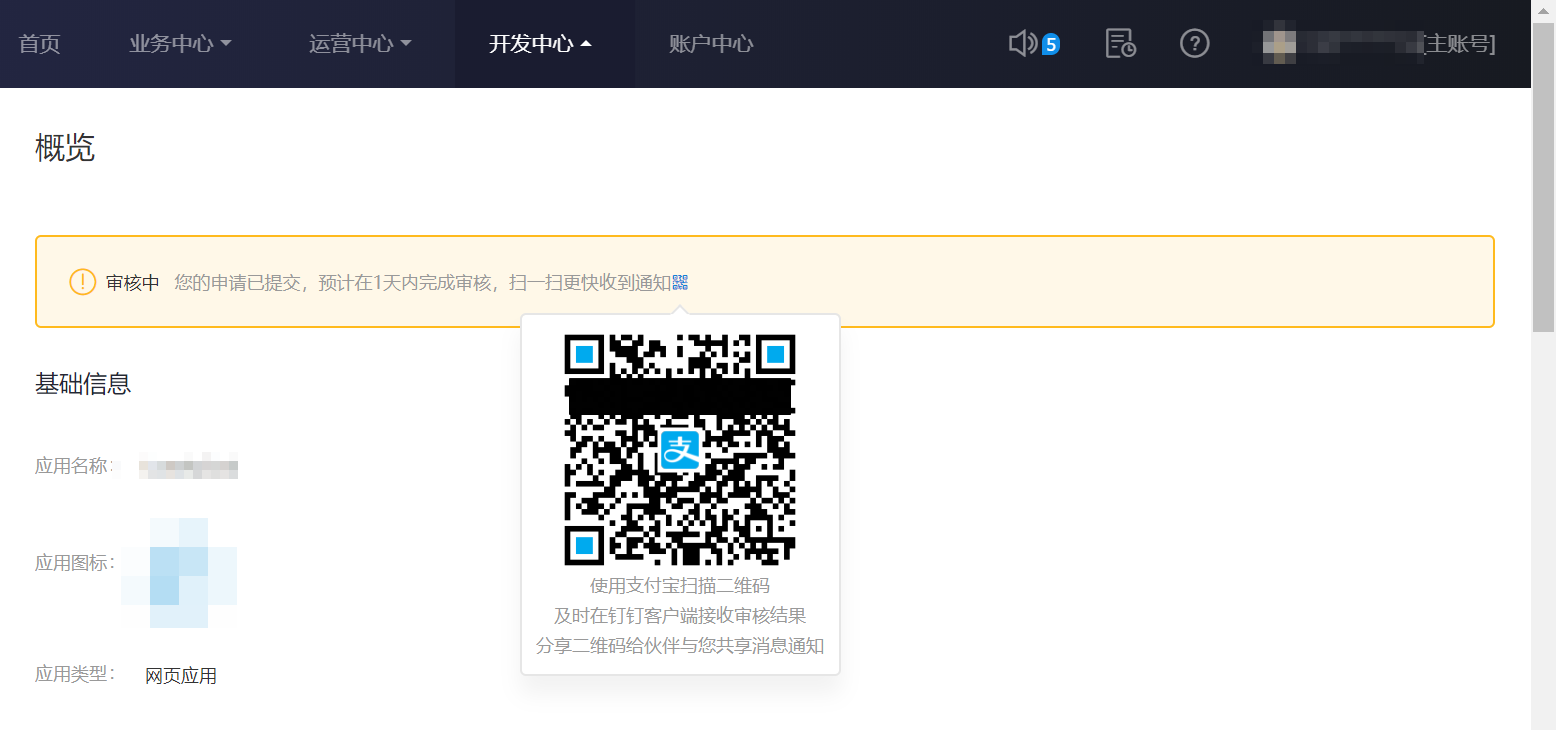 开发者点击“提交审核”后,预计会有1个工作日的审核时间,请耐心等待。如需第一时间收到通知,请使用支付宝客户端扫码,进入移动开放平台随时接收审核结果。